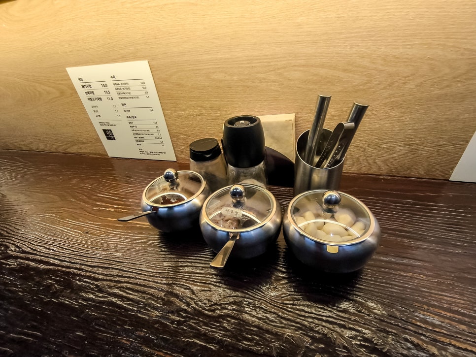 좌석은 테이블은 없고 카운터석으로만 되어 있다. 최근 이름난 돼지국밥집들은 다 이런 식으로 만드는 것 같다.