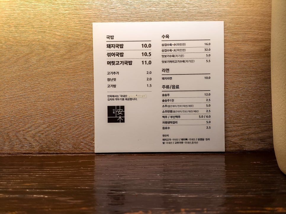메뉴가 심플하다. 그냥 돼지국밥에 머릿고기 국밥 정도이다. 수육과 냉제육이 있는데 다음에 가게 되면 먹어보고 싶다.