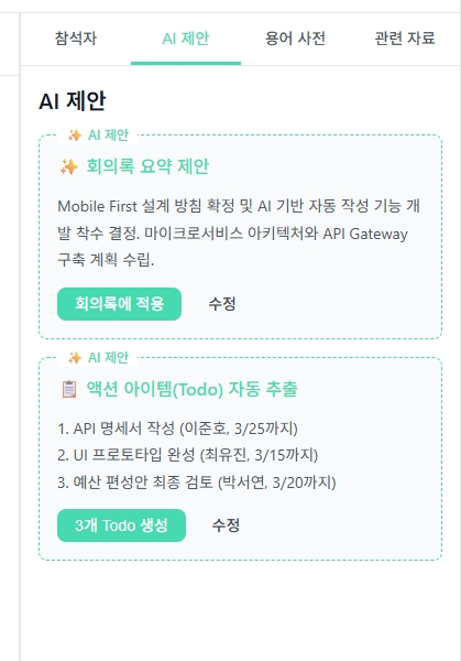 - prototype_yabo 디렉토리에 9개 프로토타입 화면 추가 - 01-로그인 ~ 12-회의록목록조회 - common.css, common.js 공통 리소스 포함 - TEST_RESULTS.md 테스트 결과 문서 포함 - style-guide_yabo.md 스타일 가이드 추가 - Mobile First 디자인 시스템 정의 - 15개 섹션 (컬러, 타이포그래피, 간격, 버튼 등) - uiux.md 설계 문서 최적화 (버전 1.3.3) - 공통 UI 컴포넌트 섹션 신규 작성 - 공통 에러 메시지 표준 섹션 신규 작성 - 중복 내용을 참조 링크로 교체 (약 8-10% 크기 감소) - reference/sampleimg 샘플 이미지 정리 - 파일명 통일 (화면 suffix 추가) - 회의진행화면 탭별 이미지 3개 추가 🤖 Generated with [Claude Code](https://claude.com/claude-code) Co-Authored-By: Claude <noreply@anthropic.com>